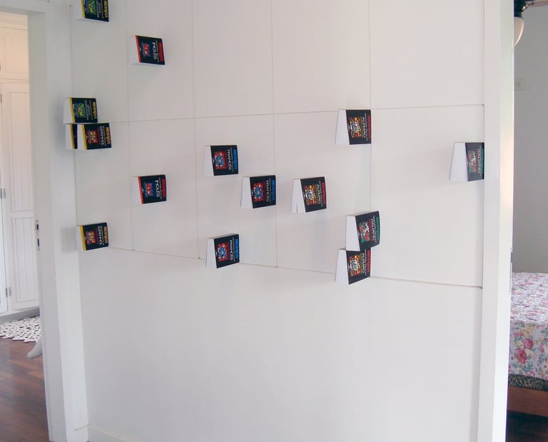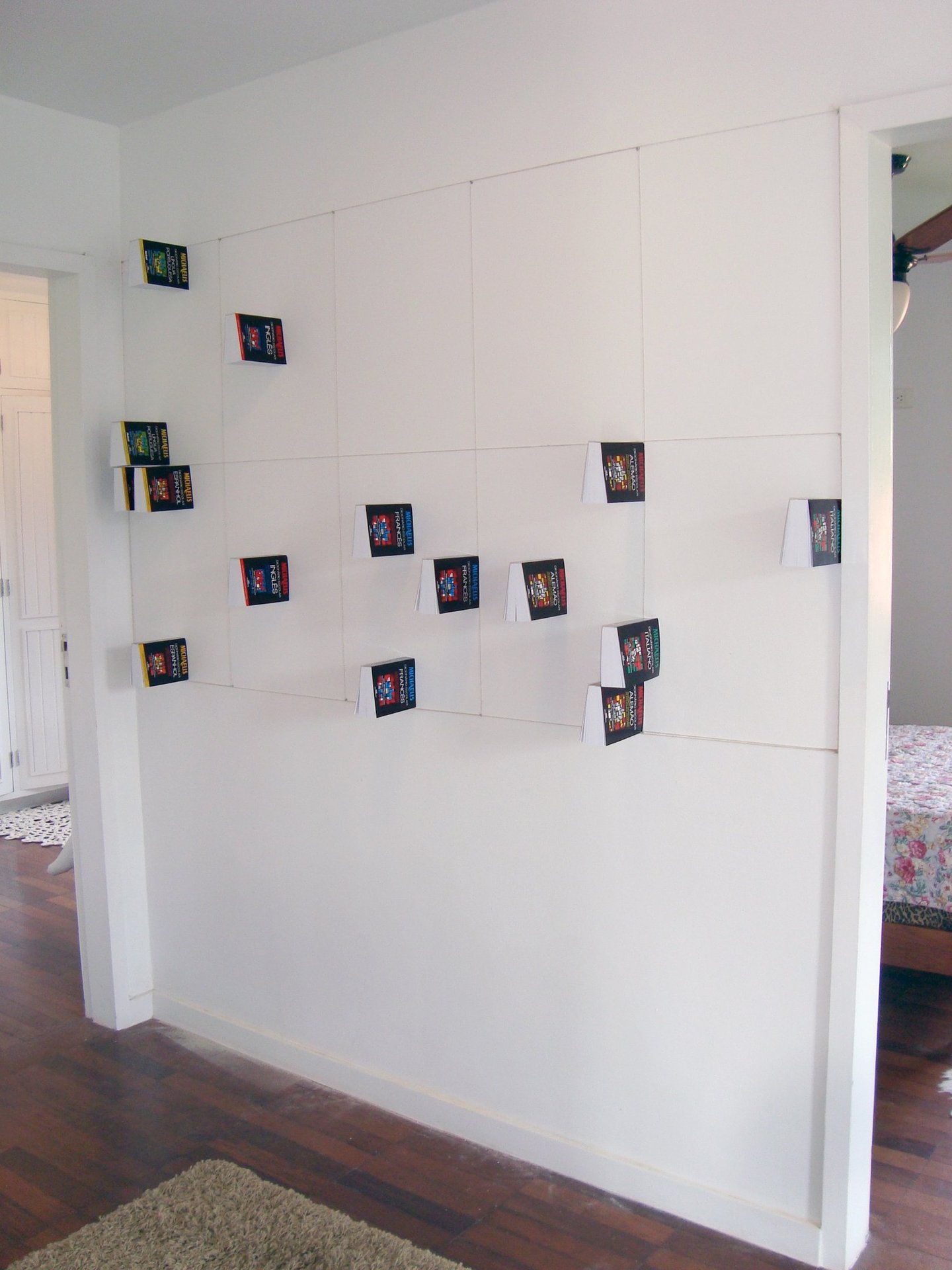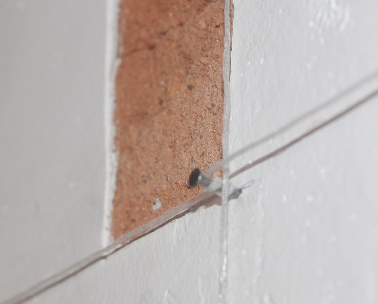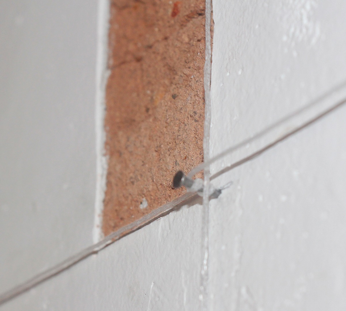 buracos na parede, pregos e linha de nylon